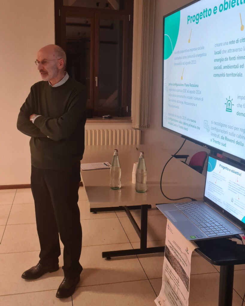 Una sessantina le persone in sala, che hanno dato vita a un proficuo dibattito alla fine della nostra presentazione. Oltre a chiarire meglio come funzionano le comunità energetiche rinnovabili e il meccanismo di incentivazione dell’energia pulita scambiata virtualmente, si è parlato di valori della cooperazione, di democrazia energetica e di metodi partecipativi.